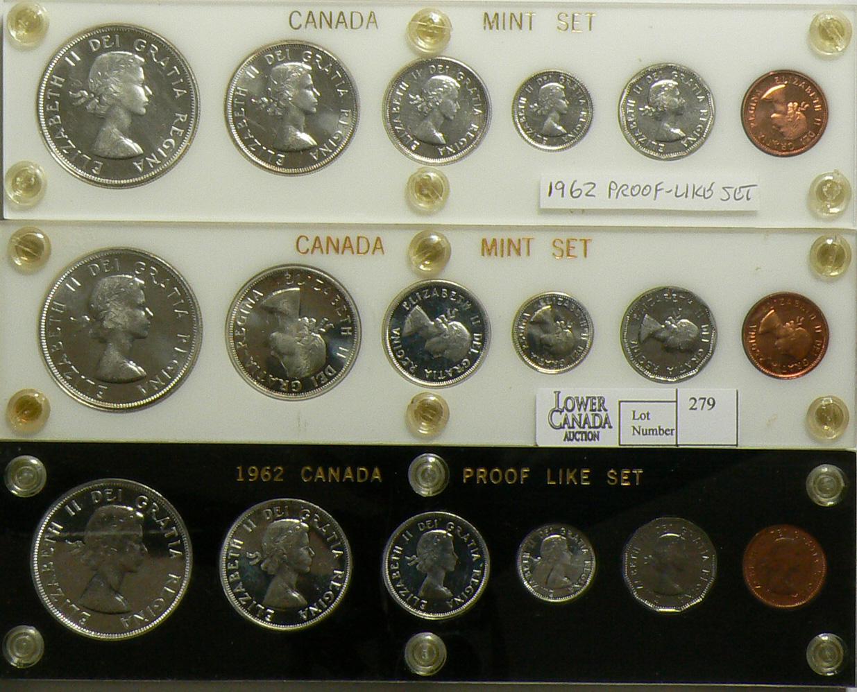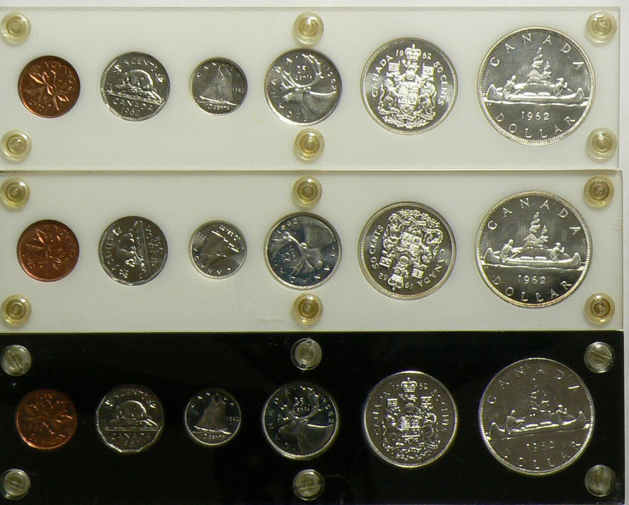 1962, PROOF LIKE set in hard case. Lot of 3 sets.