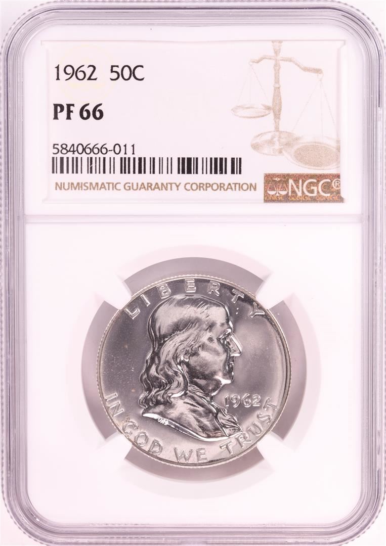 One 1962 Proof Franklin Half Dollar Coin NGC PF66. NGC Certified.