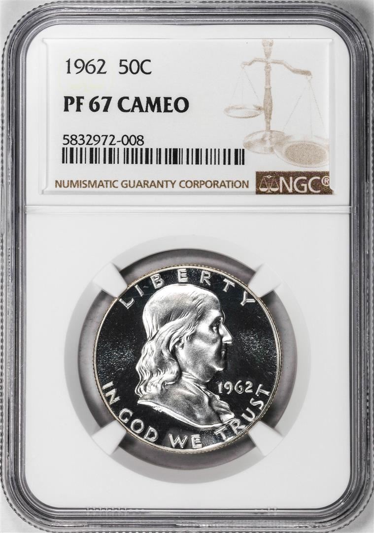 One 1962 Proof Franklin Half Dollar Coin NGC PF67 Cameo. NGC Certified.