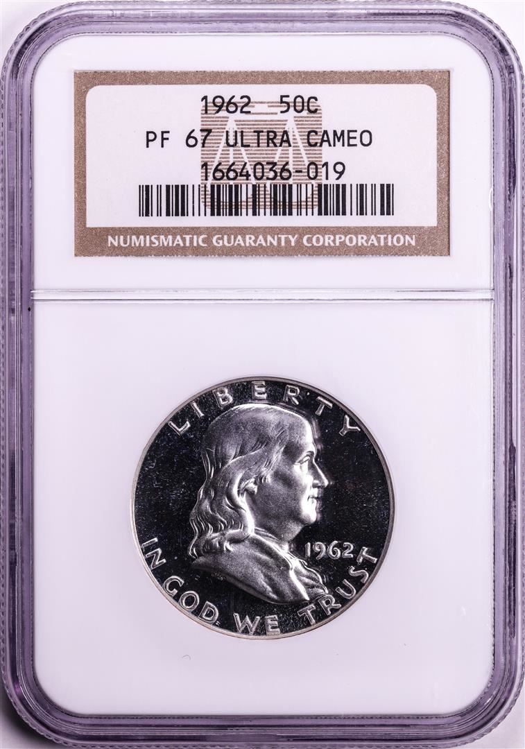 One 1962 Proof Franklin Half Dollar Coin NGC PF67 Ultra Cameo. NGC Certified.