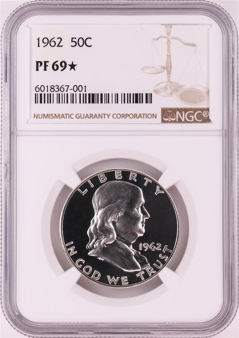 One 1962 Proof Franklin Half Dollar Coin NGC PF69* STAR. NGC Certified.