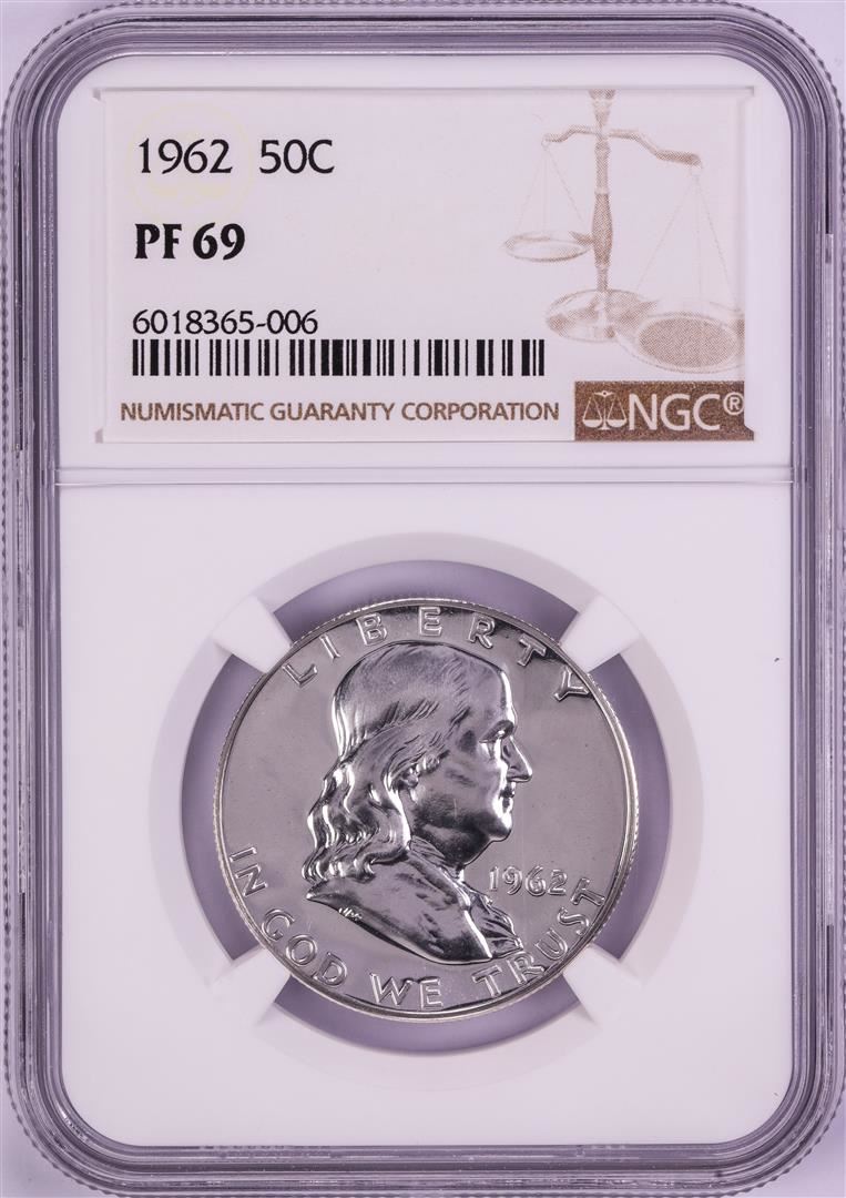 One 1962 Proof Franklin Half Dollar Coin NGC PF69. NGC Certified.