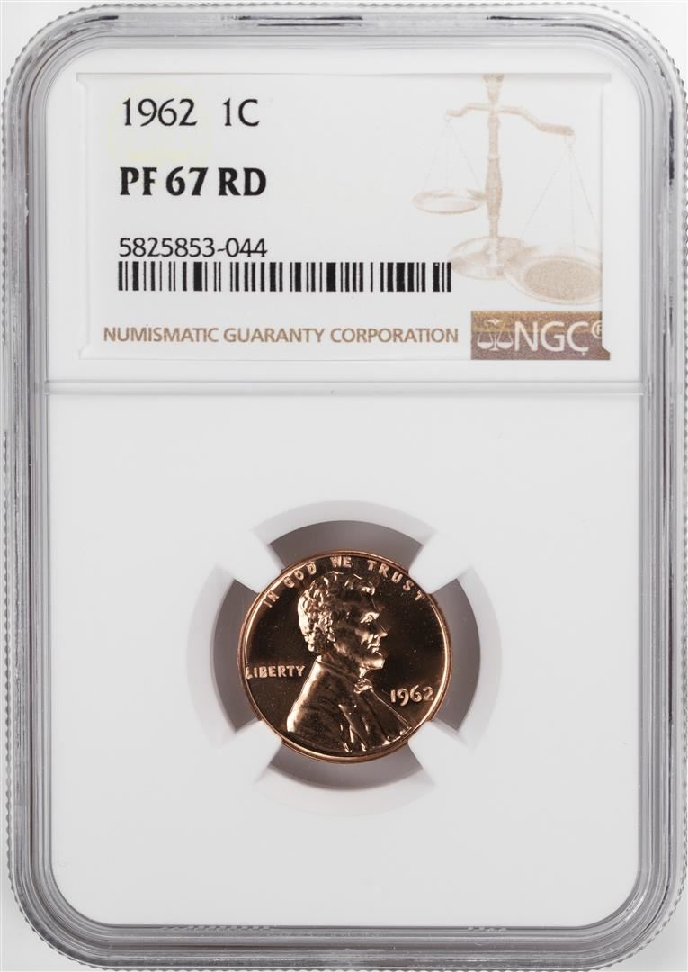 One 1962 Proof Lincoln Memorial Cent Coin NGC PF67RD. NGC Certified.