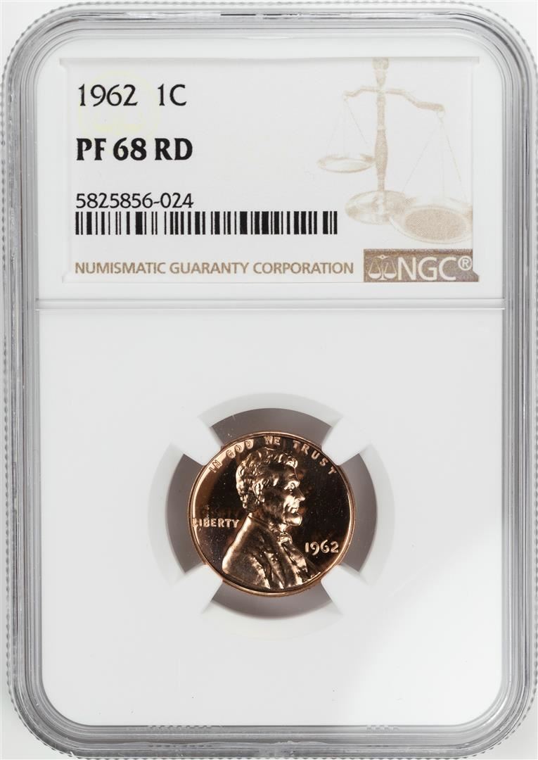 One 1962 Proof Lincoln Memorial Cent Coin NGC PF68RD. NGC Certified.