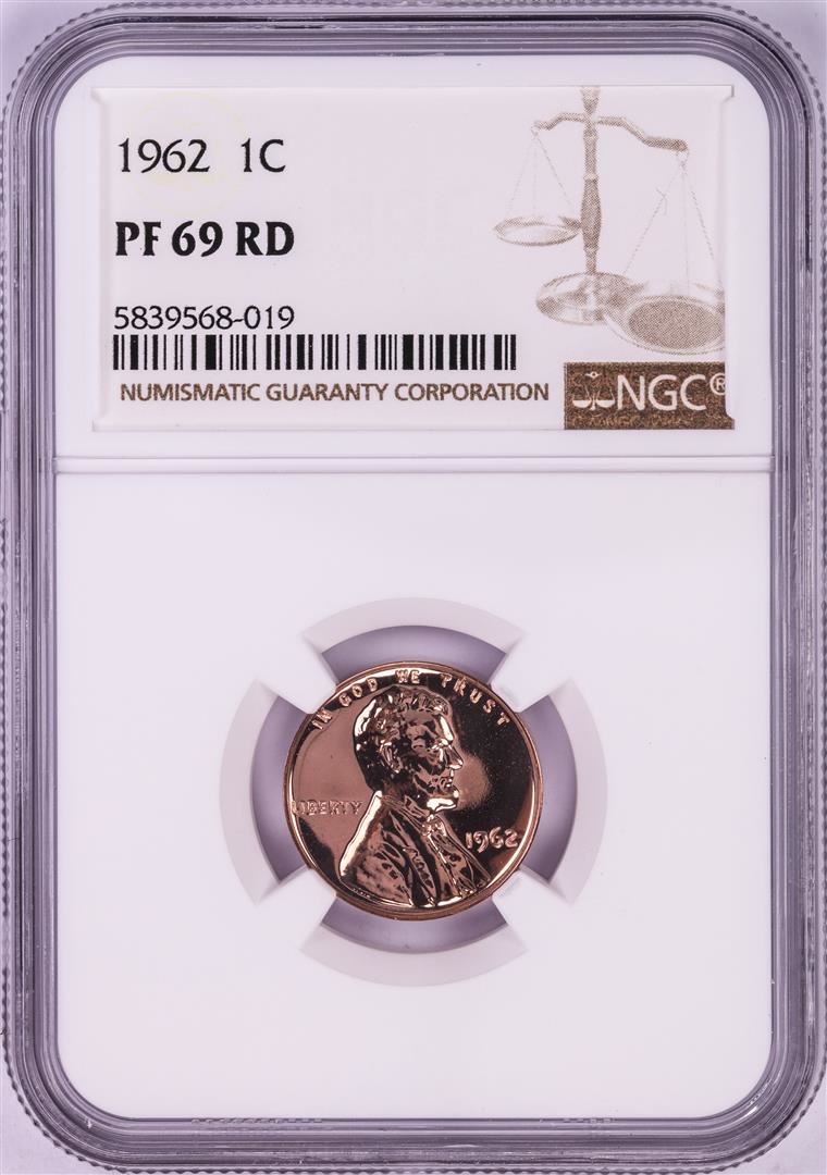 One 1962 Proof Lincoln Memorial Cent Coin NGC PF69RD. NGC Certified.
