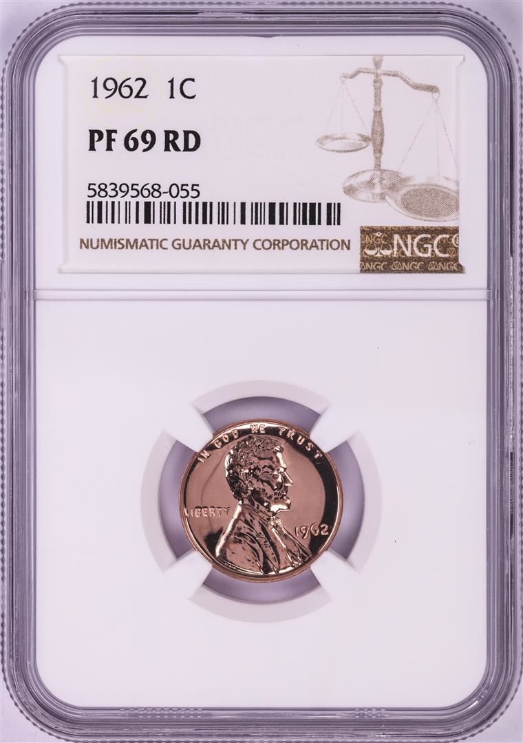 One 1962 Proof Lincoln Memorial Cent Coin NGC PF69RD. NGC Certified.