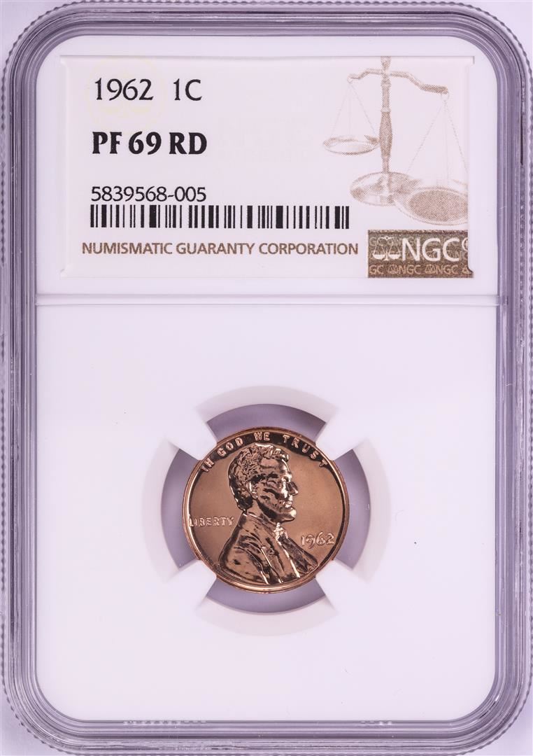 One 1962 Proof Lincoln Memorial Cent Coin NGC PF69RD. NGC Certified.