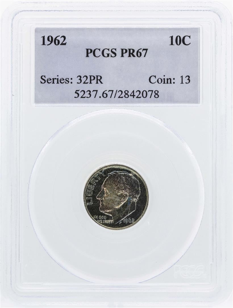 One 1962 Proof Roosevelt Dime PCGS PR67. PCGS Graded.