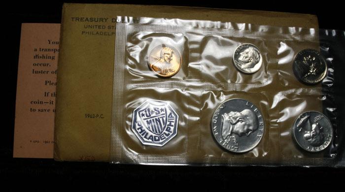 The set, has a 90% Silver Franklin Half, a 90% Proof Silver Quarter, a 90% Silver Dime, 2 Other Proof Coins including the cool blue toned Nickel, all in the Original Packaging including The Mint "Memo". Estimated Value $40