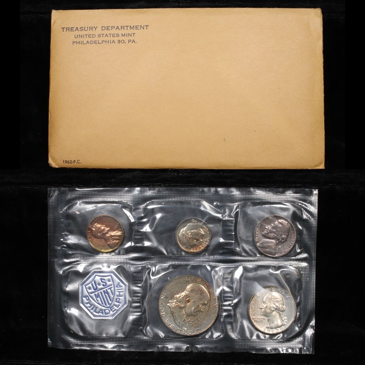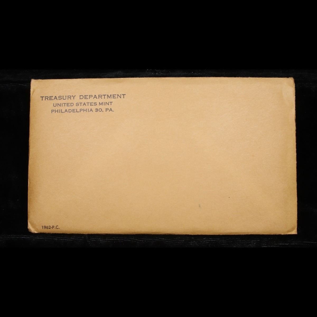 1962 Proof Set in Original mint packaging w/mint memo. This set, has a 90% Proof Silver Franklin Half Dollar, a 90% Proof Silver Quarter, a 90% Proof Silver Dime, plus the proof nickel and proof penny.