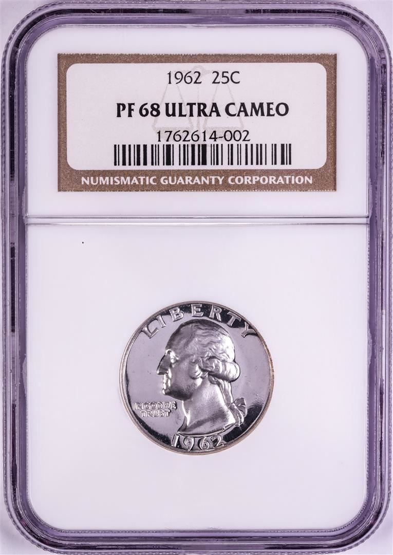 One 1962 Proof Washington Quarter Coin NGC PF68 Ultra Cameo. NGC Certified.
