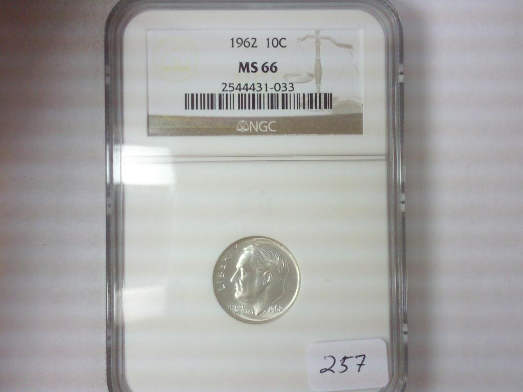 1962 ROOSEVELT DIME NGC MS66