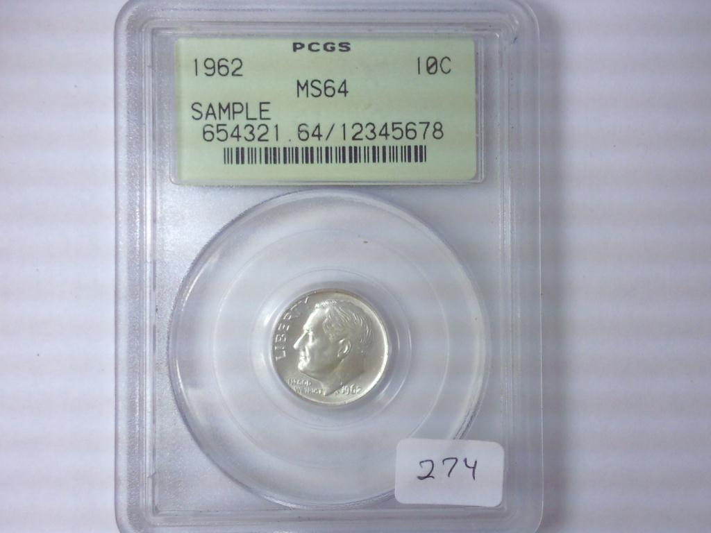 1962 ROOSEVELT DIME PCGS MS64 SAMPLE SLAB