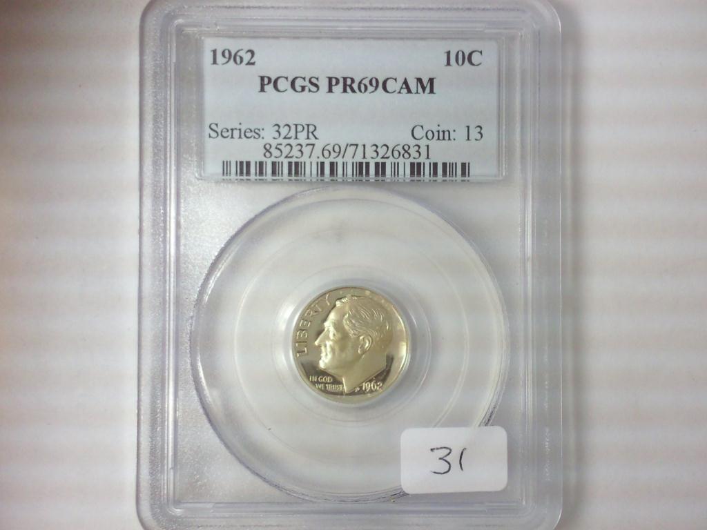1962 ROOSEVELT DIME PCGS PR69DCAM