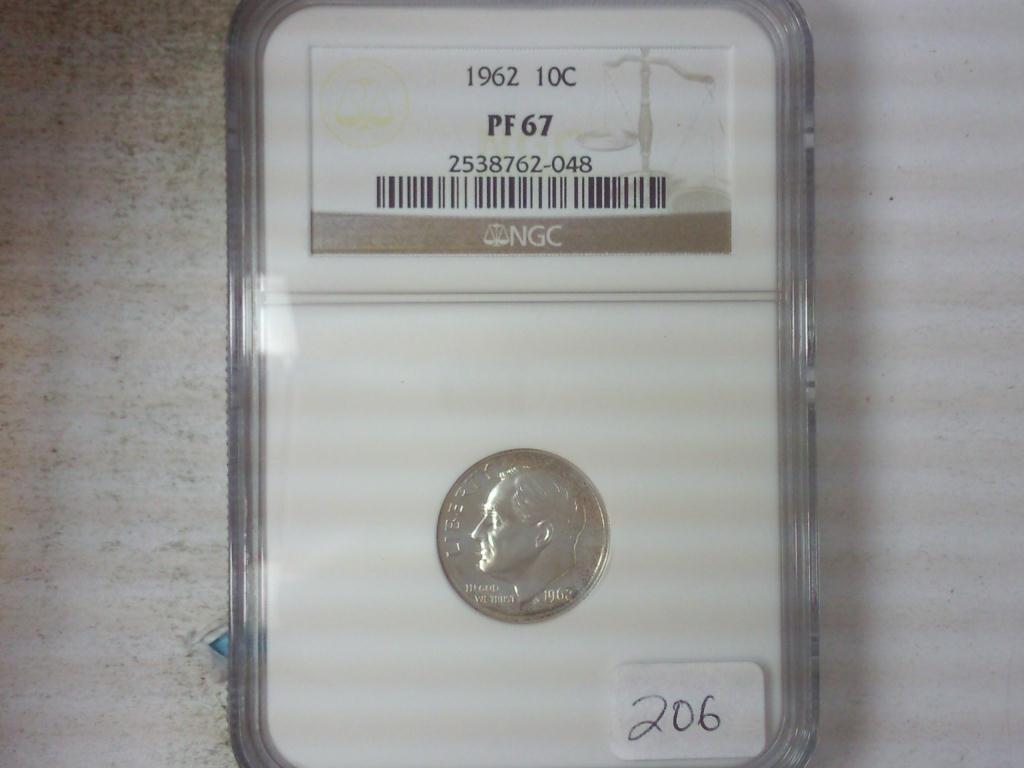 1962 ROOSEVELT SILVER DIME NGC PF67