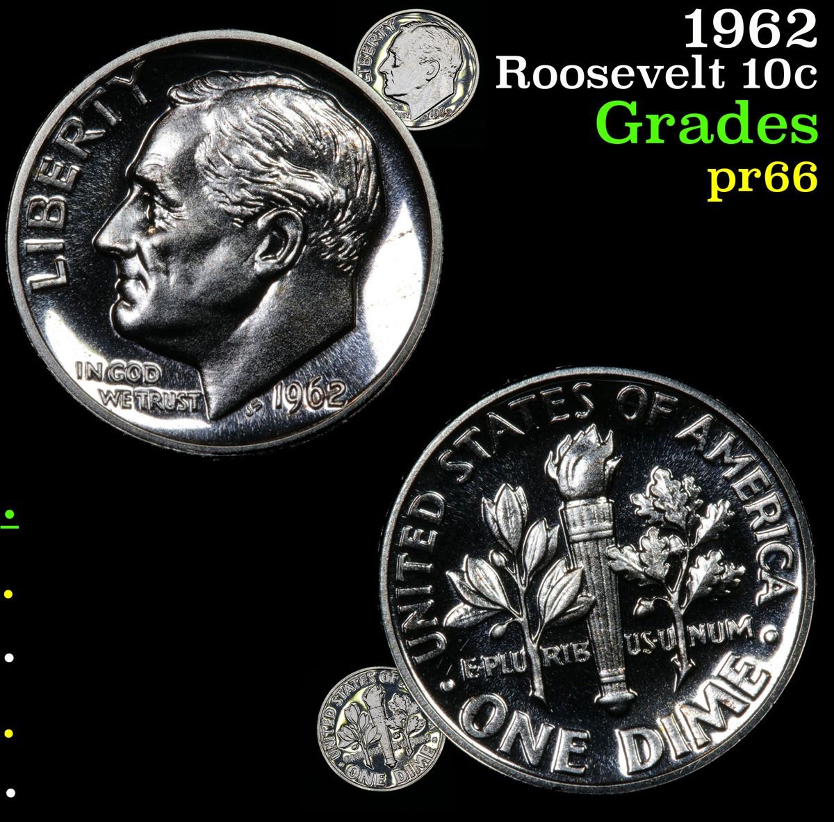 1962 Roosevelt Dime 10c Grades GEM+ Proof.