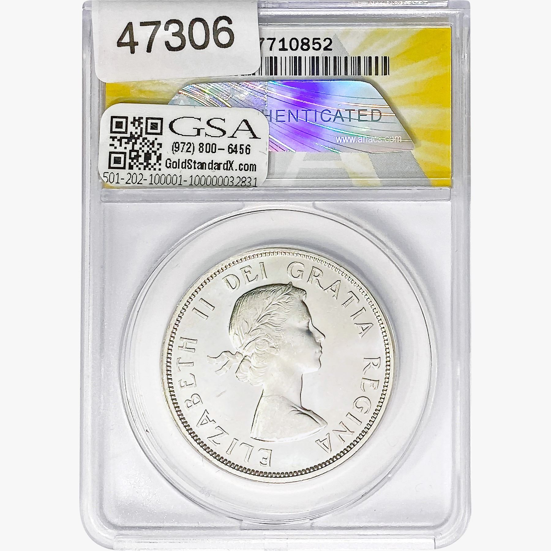 e. Coins sold referencing a third-party grading service are sold “AS IS” without any express or implied warranty, except for a guarantee by GSA that they are genuine. Removal or alteration of the holder, voids all of Bidder’s claims concerning that Product. Certain warranties may be available from the grading services and Bidders are referred to them for further details: Numismatic Guaranty Corporation (NGC), PO Box 4776, Sarasota, FL 34230, www.ngccoin.com/services/writtenguarantee.asp; Professional Coin Grading Services (PCGS), PO Box 9458, Newport Beach, CA 92658, www.pcgs.com/guarantee.html; ANACS, 6555 S. Kenton St., Ste. 303, Englewood, CO 80111; and Independent Coin Grading Co. (ICG), 7901 East Bellview, Ave., Suite 50, Englewood, CO 80111.