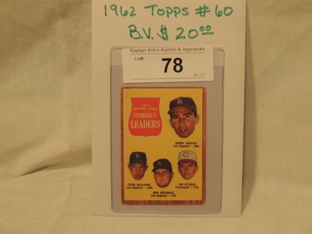 1962 TOPPS #60 STRIKEOUT LEADERS BASEBALL CARD