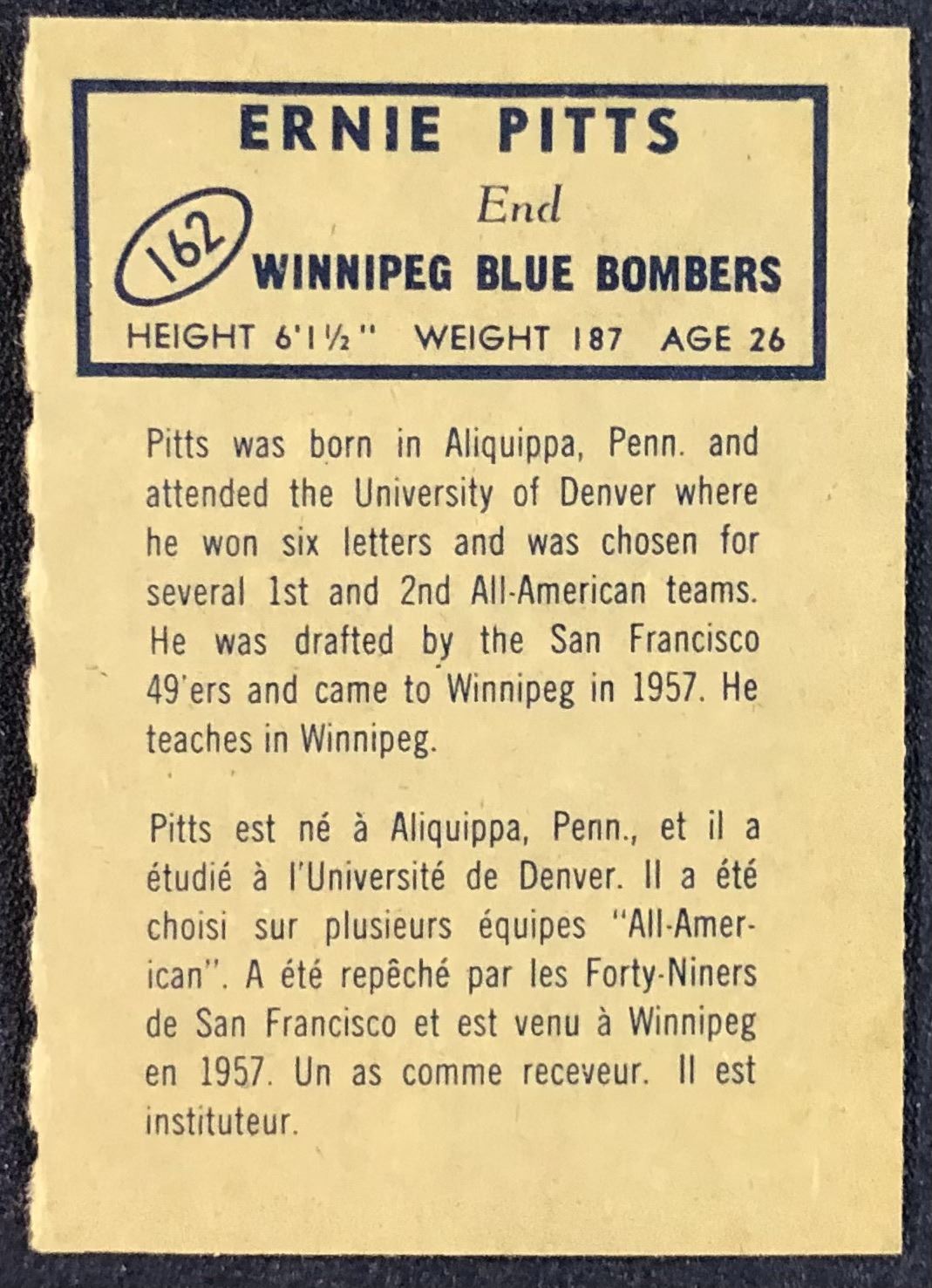 Card #162 CFL, football, OPC, vintage, hall of fame