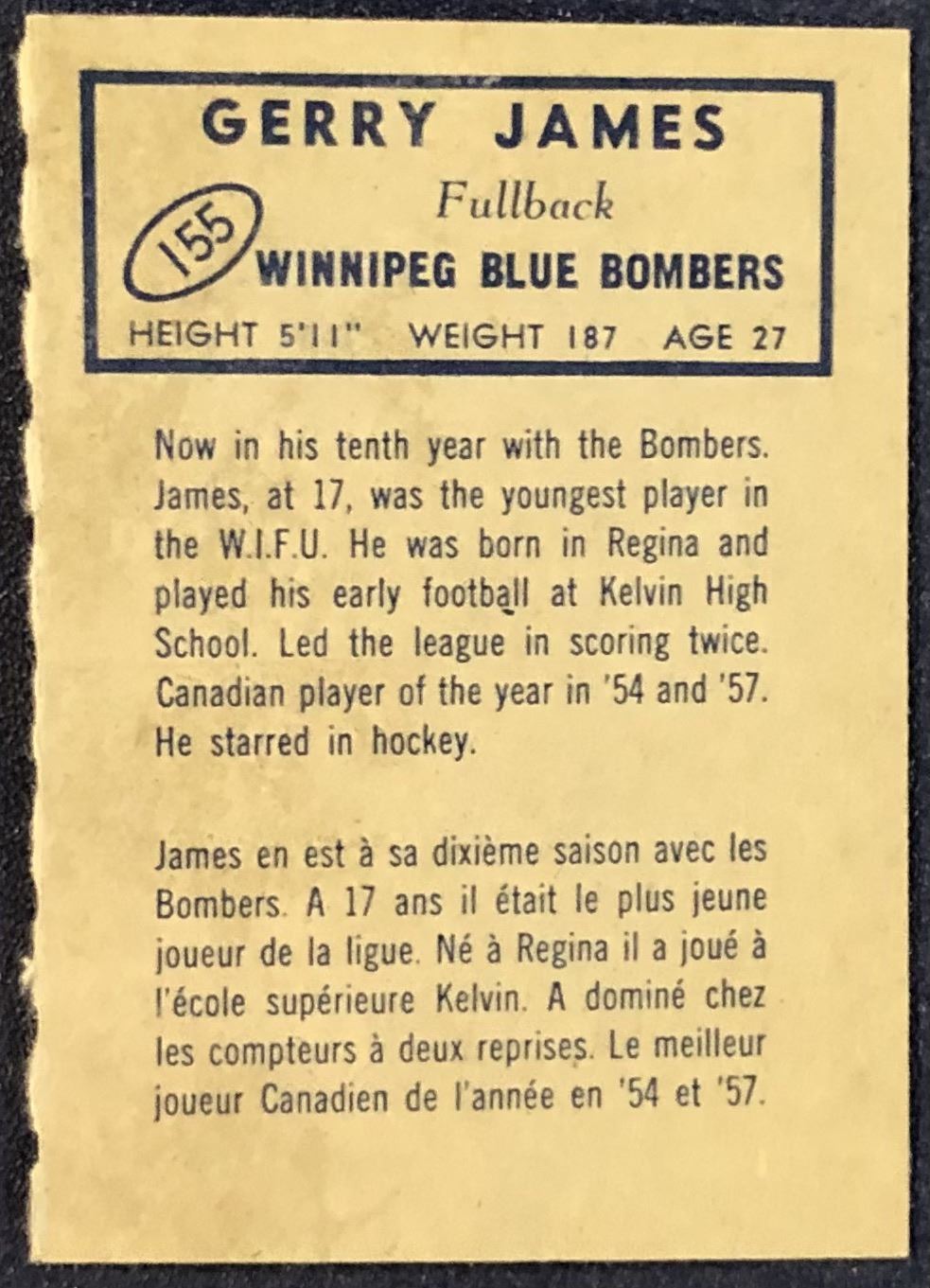 Card #155 CFL, football, OPC, vintage, hall of fame