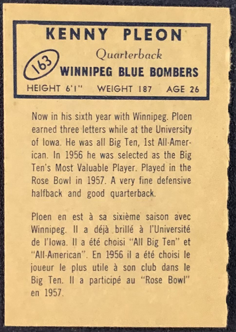 Card #163 CFL, football, OPC, vintage, hall of fame