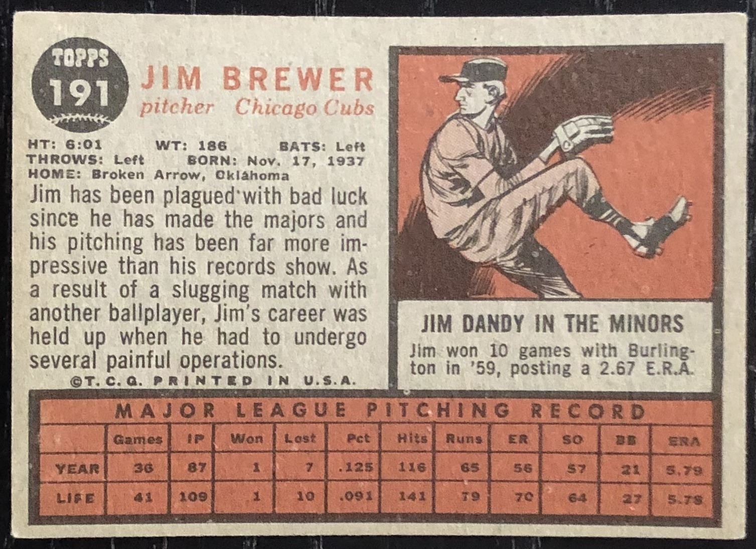 Card #191 MLB, baseball, vintage, rookie