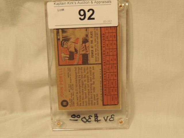 1962 TOPPS JOHN POWELL ROOKIE BASEBALL CARD