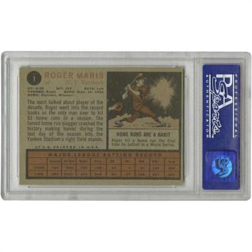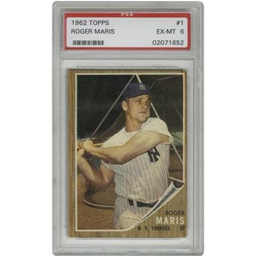 1962 TOPPS ROGER MARIS #1 EX/MT PSA 6. The toug