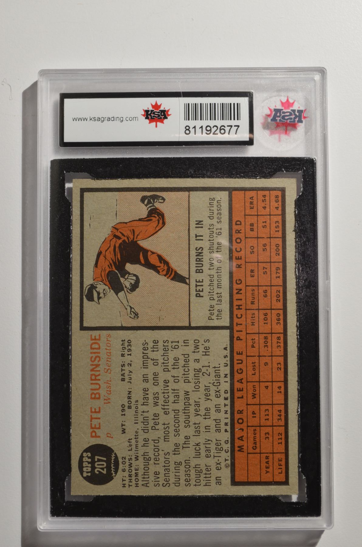 1962 Topps #207 Pete Burnside