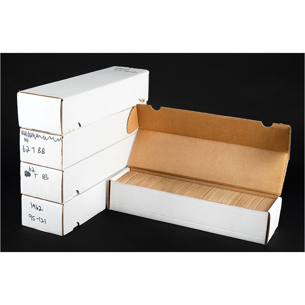 Massive hoard of over 3,250 cards from the iconic wood-look 1962 Topps baseball set, offering an amazing assortment including a few stars and Hall of Famers, plus dozens of team cards, leaders, checklists, and green tints. Overall, the group grades at 15% EX, 75% VG-EX, and 10% VG. Highlights include: #3 Pete Runnels (EX), #29 Casey Stengel (VG-EX), #20 Rocky Colavito (2: VG-EX), #40 Orlando Cepeda (VG), #140 Gehrig and Ruth (4: VG-EX), #167 Tim McCarver (3: VG to VG-EX), #234 Maris Wins It (VG-EX), #213 Richie Ashburn (VG-EX), #353 Bill Mazeroski (6: VG-EX to EX), and #430 Tony Kubek (VG-EX).