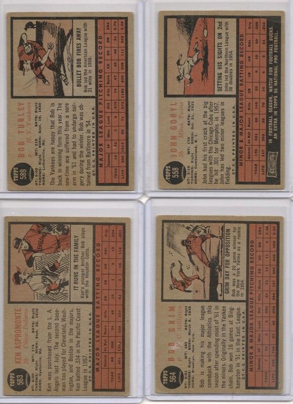 1962 Topps Lot of 4 High Numbers - Bob Turley