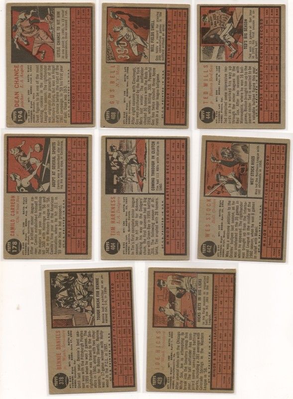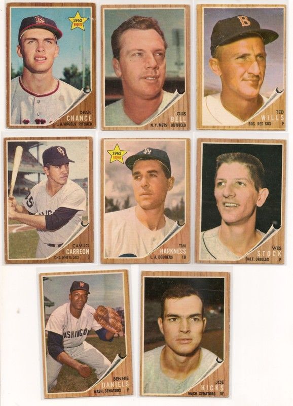 1962 Topps Lot of 8 - Dean Chance, Gus Bell