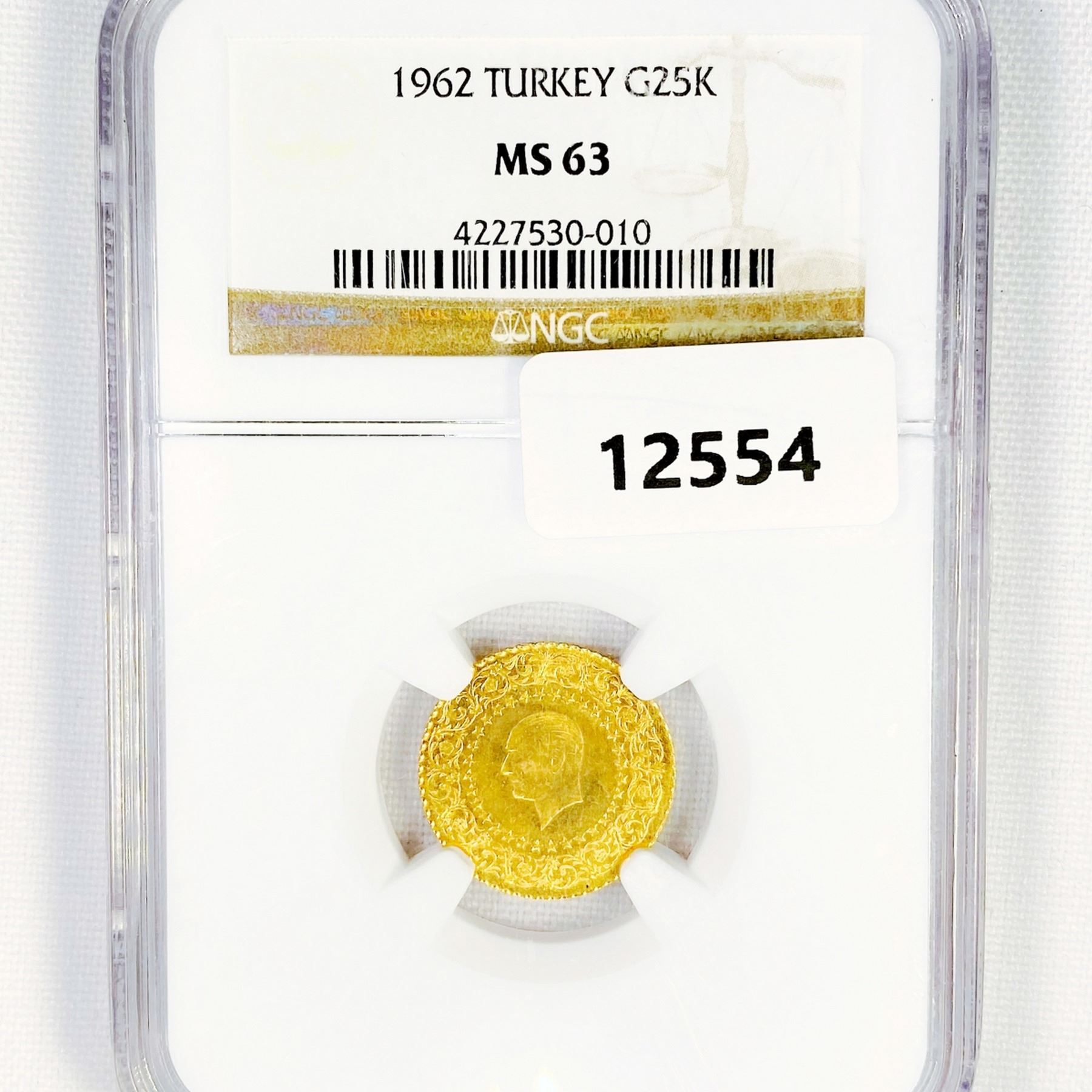 1962 Turkish Gold 25 Kurush NGC-MS63