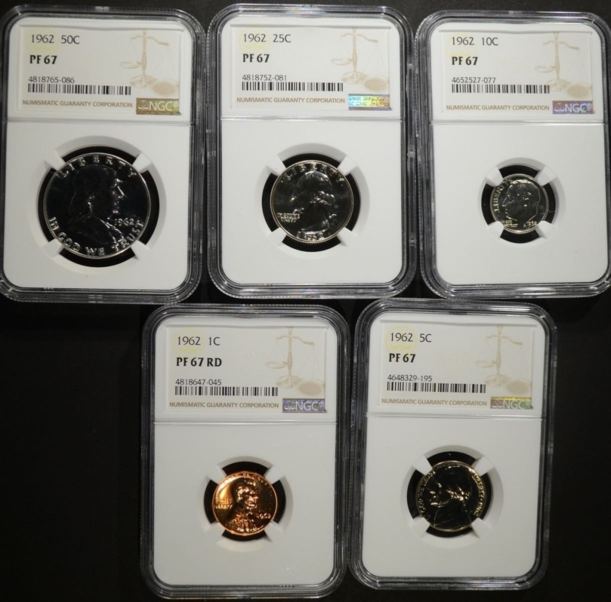 1c PF67RD, 5c, 10c, 25c, 50c ALL PF68 ESTIMATE $175 - $200.