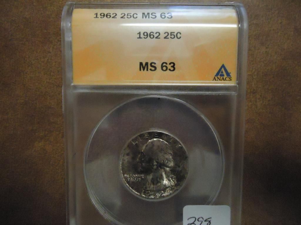 1962 WASHINGTON SILVER QUARTER ANACS MS63 TONED