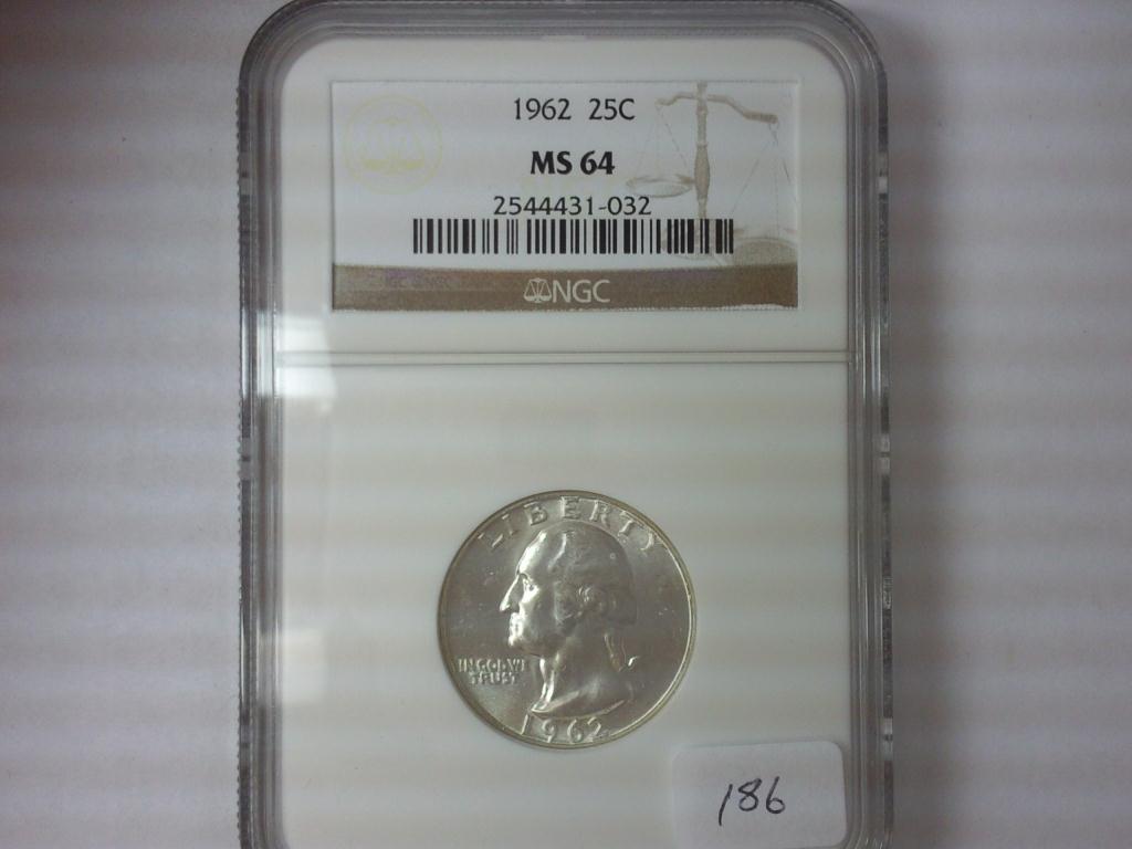 1962 WASHINGTON SILVER QUARTER NGC MS64