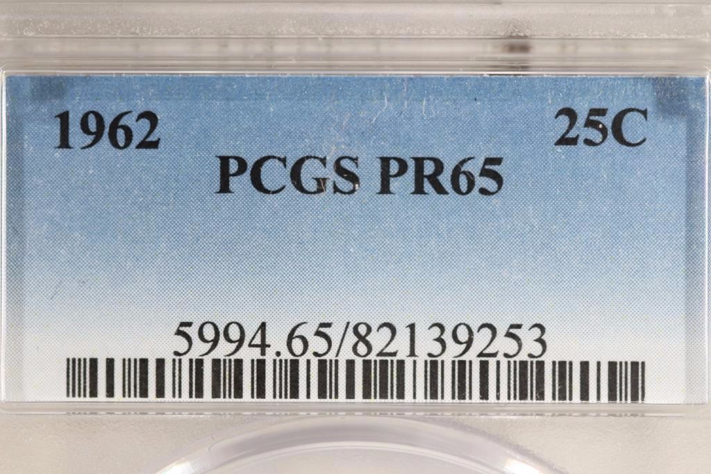 1962 WASHINGTON SILVER QUARTER PCGS PR65