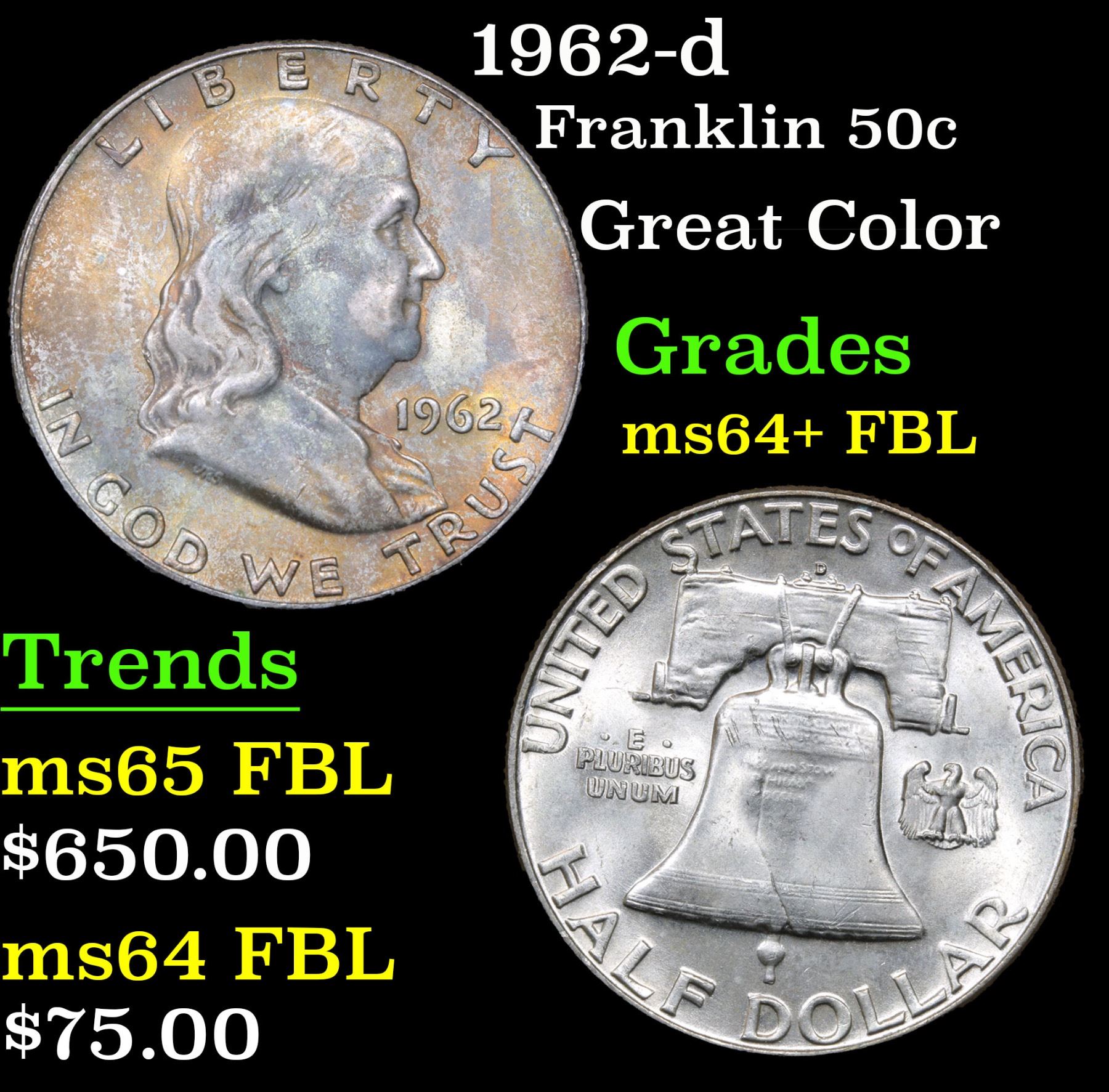1962-d Franklin Half Dollar 50c Grades Choice Unc+ FBL. Great Color