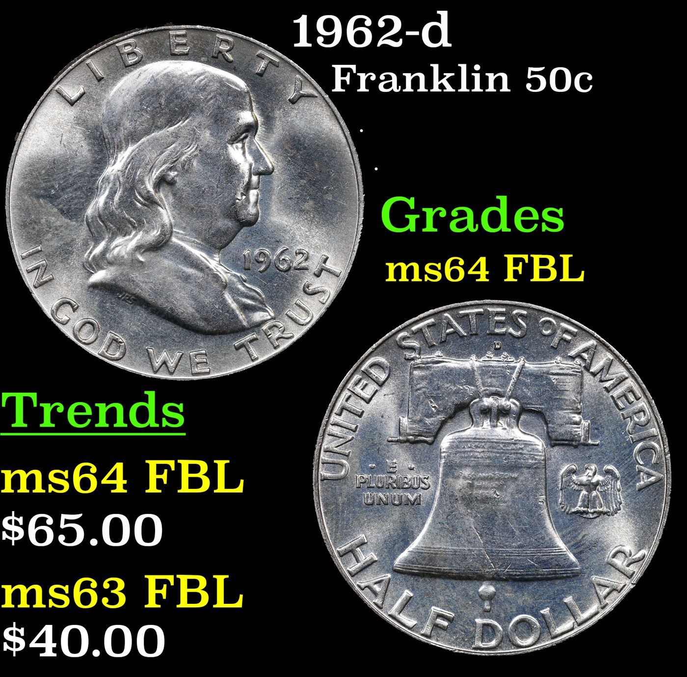 1962-d Franklin Half Dollar 50c Grades Choice Unc FBL.