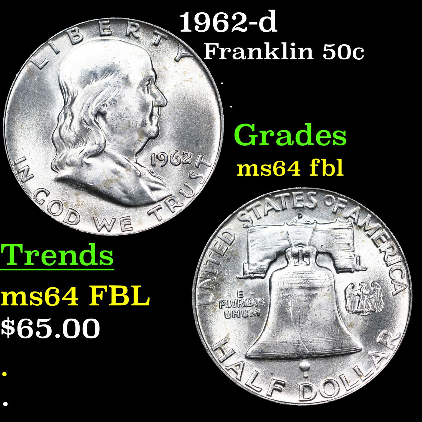 1962-d Franklin Half Dollar 50c Grades Choice Unc FBL.