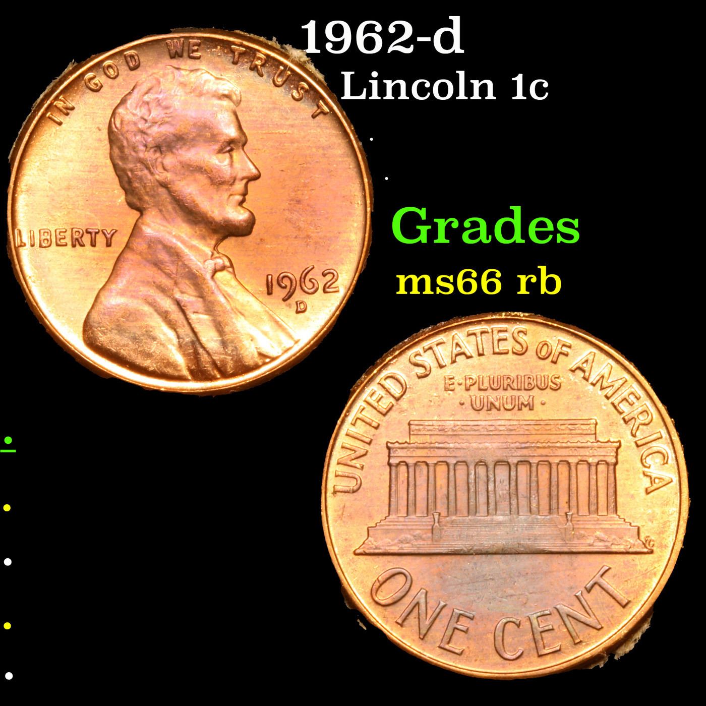 1962-d Lincoln Cent 1c Grades GEM+ Unc RB.