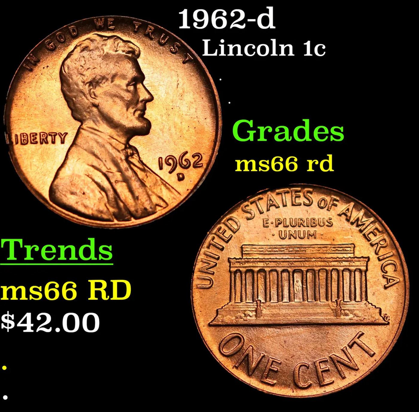 1962-d Lincoln Cent 1c Grades GEM+ Unc RD.