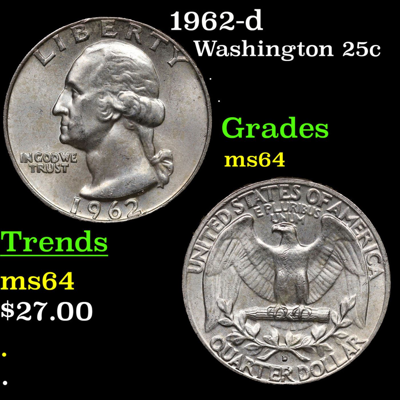 1962-d Washington Quarter 25c Grades Choice Unc.