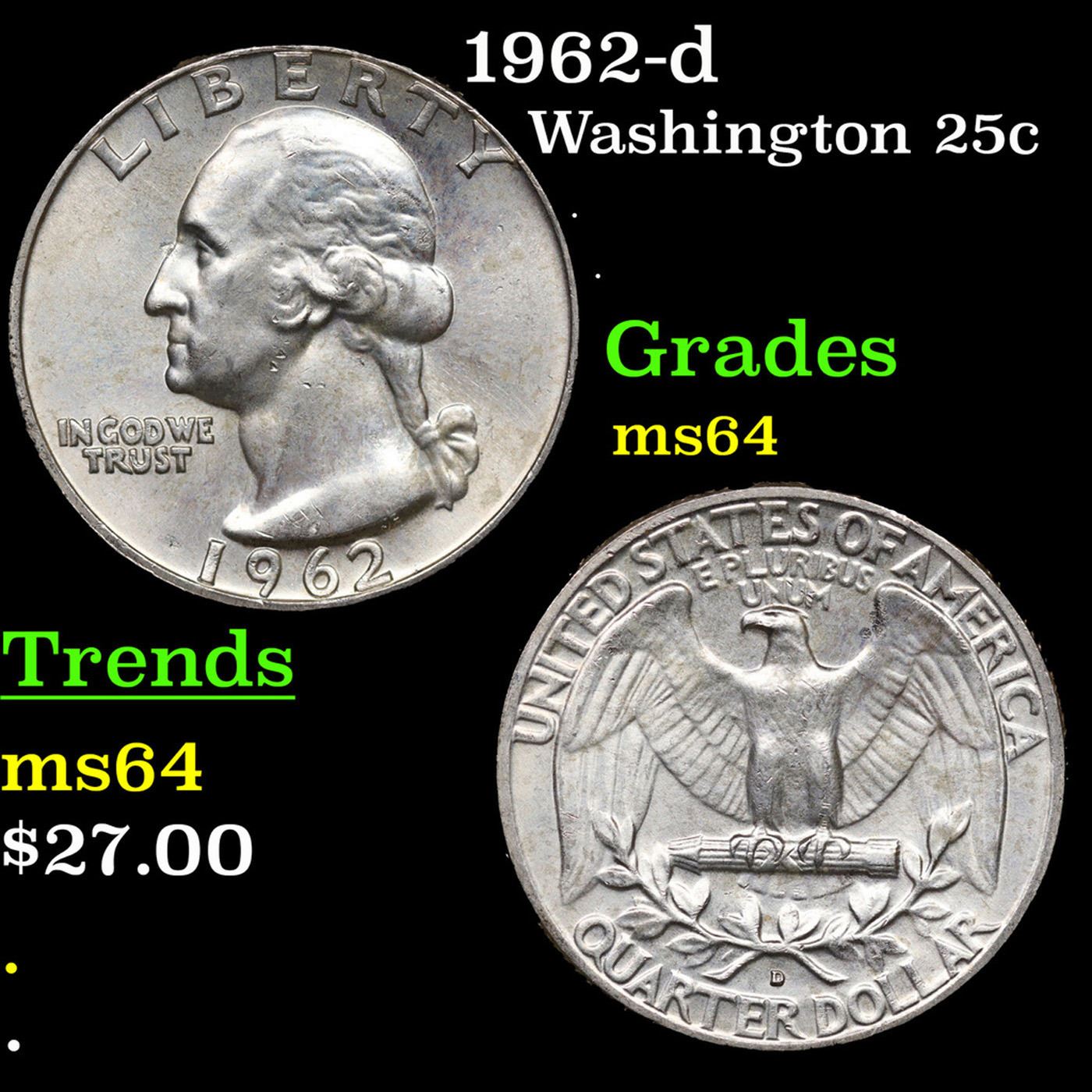 1962-d Washington Quarter 25c Grades Choice Unc.
