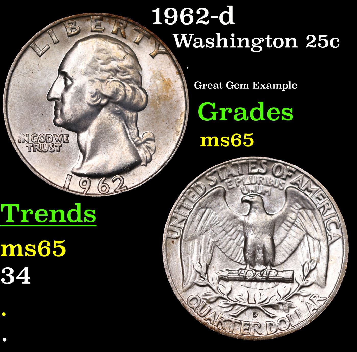 1962-d Washington Quarter 25c Grades GEM Unc.