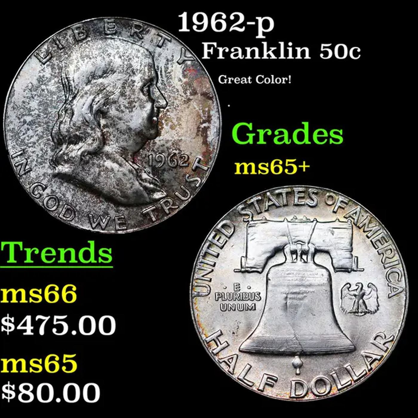 1962-p Franklin Half Dollar 50c Grades GEM+ Unc.