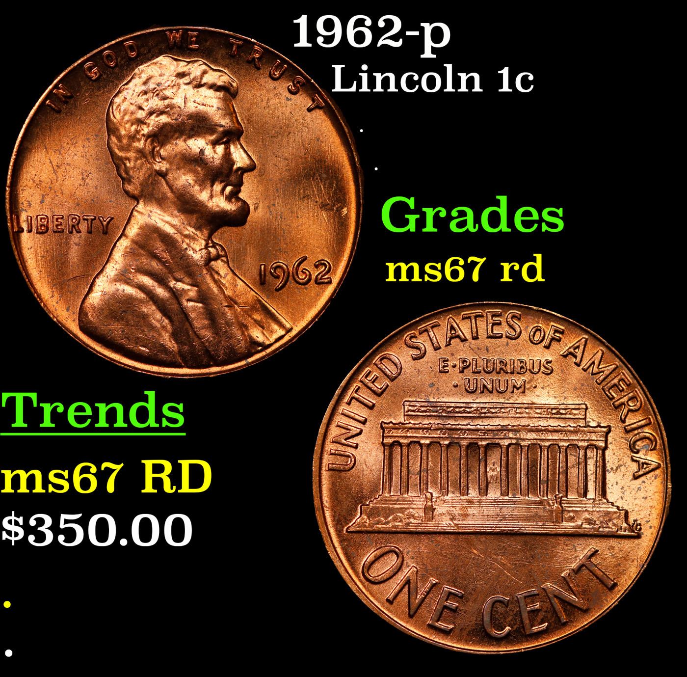 1962-p Lincoln Cent 1c Grades GEM++ Unc RD.