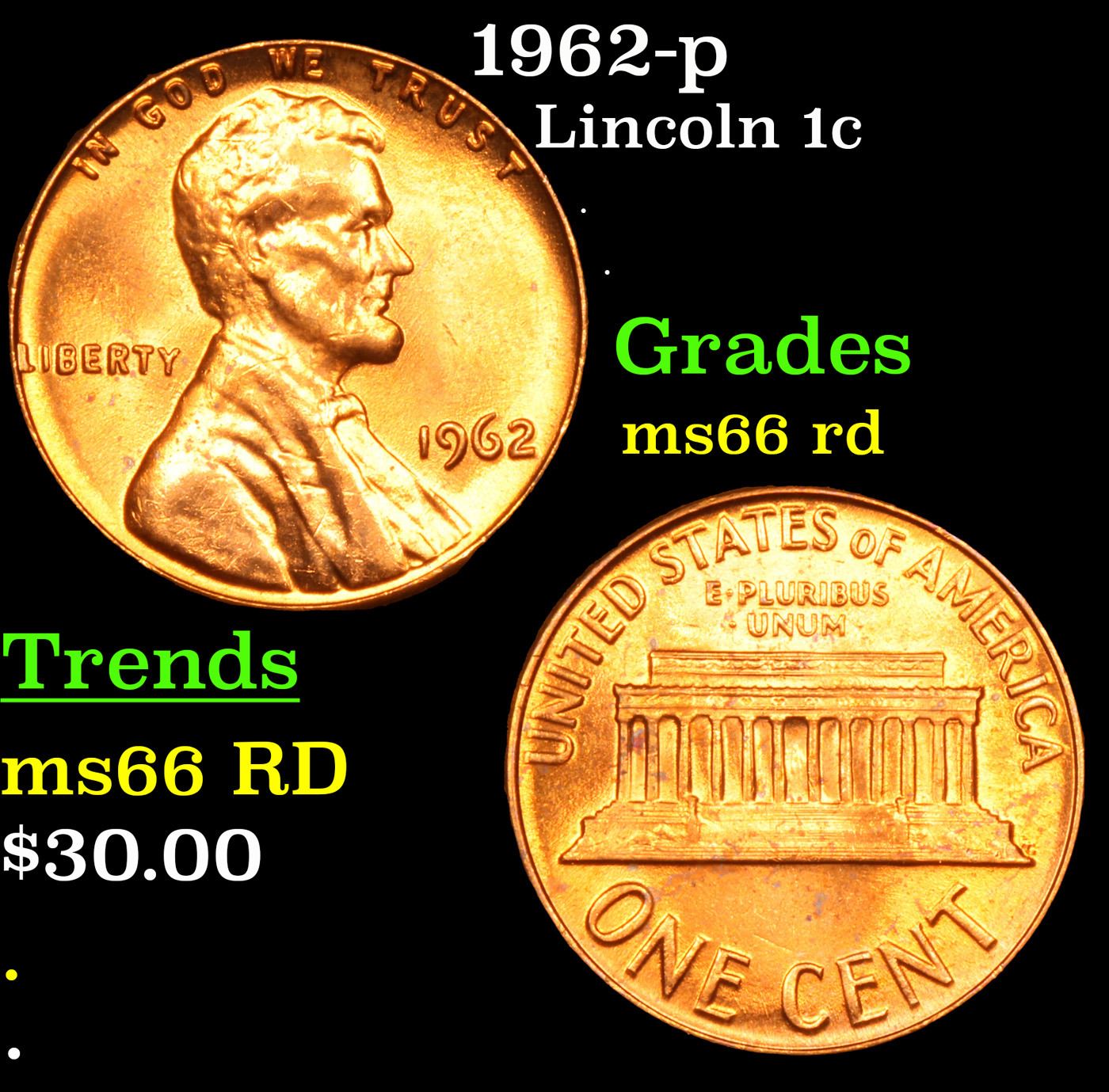 1962-p Lincoln Cent 1c Grades GEM+ Unc RD.