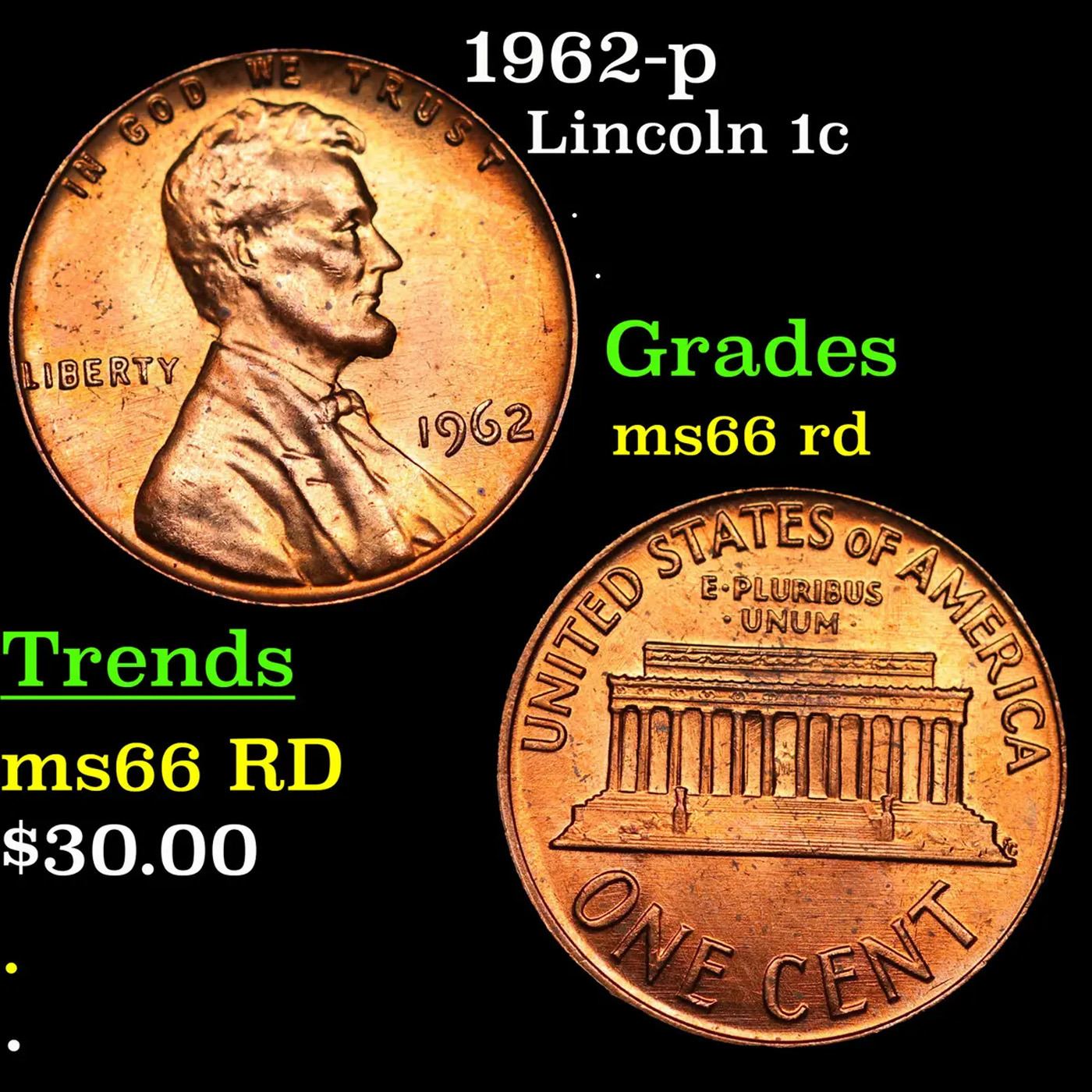 1962-p Lincoln Cent 1c Grades GEM+ Unc RD.