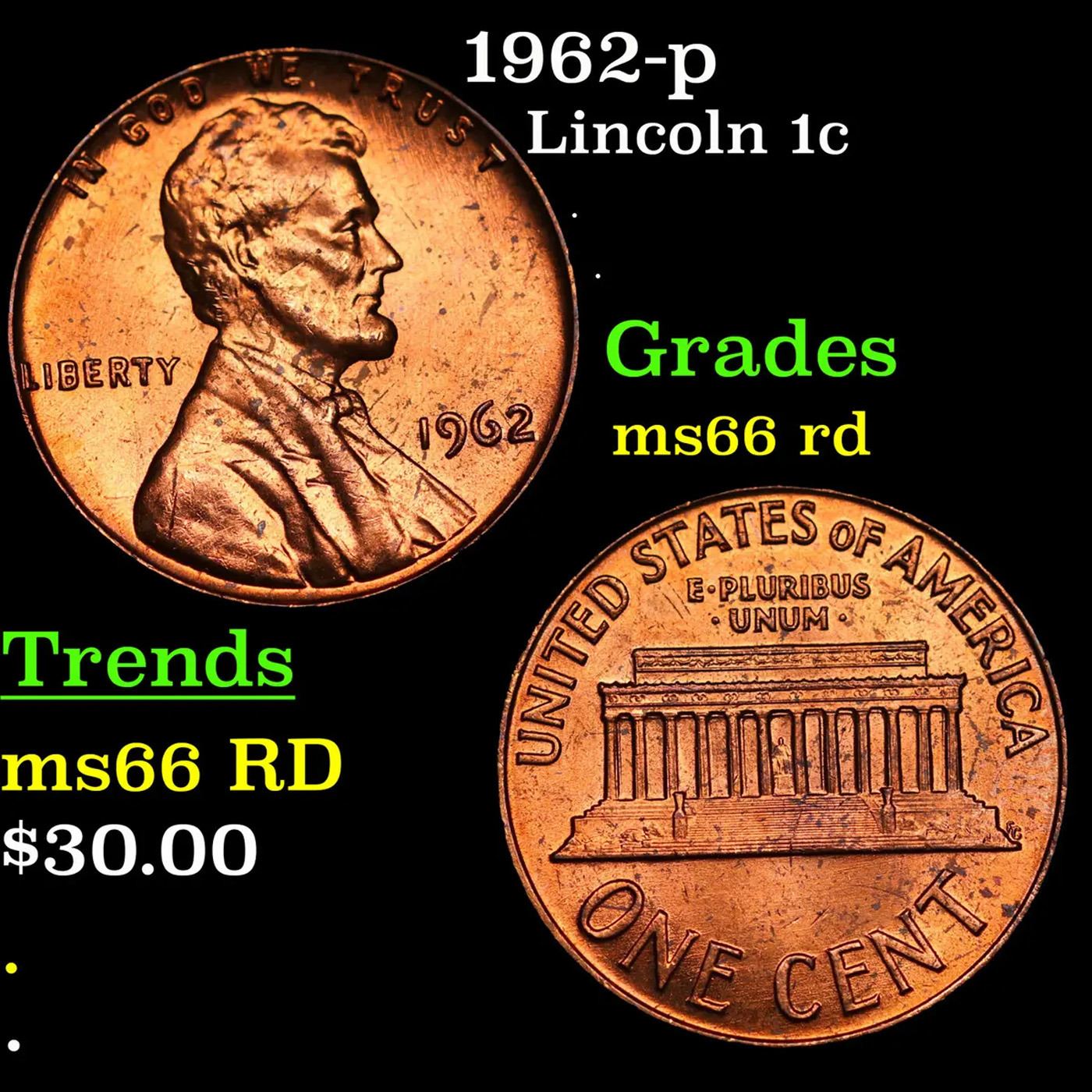 1962-p Lincoln Cent 1c Grades GEM+ Unc RD.